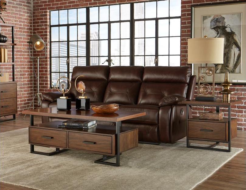 Whether your home leans to transitional or contemporary design, the Sedley Collection will be the perfect fit for your living room needs. From the distinct walnut veneer pattern to the unique framing of the cocktail table and end table, each design component lends to placement in a variety of home settings. The dark metal horizontal hardware and metal support framing complements the finish of the group while providing distinct contrast. Drawer storage lends additional functionality to the collection. The collection also features bedroom, dining, home entertainment and office options.