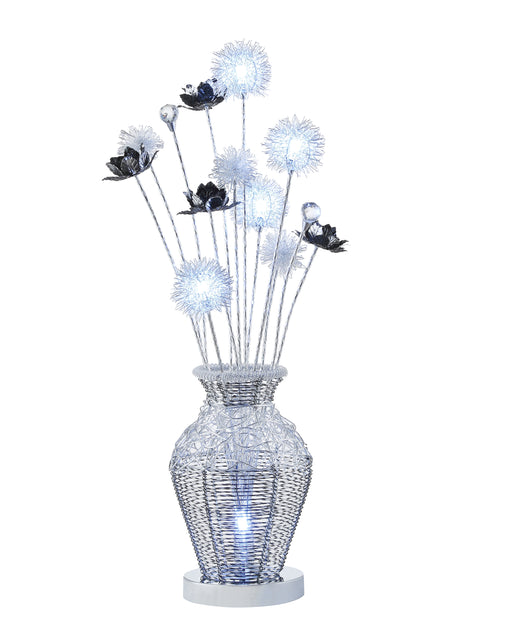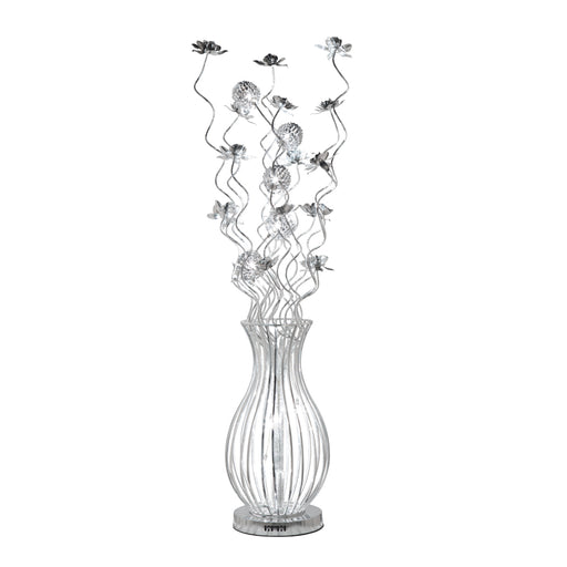 Metal - Chrome / Flower ArrangementLED Bulbs: 4W + 1W LED BULBSDimensions: 10.5" x 10.5" x 34"H