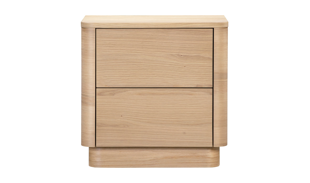 A soft, natural look for your bedroom. The Round Off collection is a showcase of organic oak, with the beautiful pale tones of the grain matched to a simple, comforting design. The low build and the softly molded corners of this king bed give it an air of quiet sophistication, while the solid panel headboard is a perfect showcase for the wood’s fundamental beauty. As part of the Round Off bedroom collection, try pairing it up with the nightstand and dresser for a complete look. Natural beauty and character come together to promote mellow relaxation in the most personal room of your home.