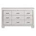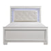 Glamour reigns in the design of the Allura Collection. Framing each piece is a decorative beveled mirror accent that enhances the illumination from the touch-engaged LED backlight of the headboard and mirror, as well as the under-light of the night stand. Alligator embossing and high polished crystal-enhanced hardware boldly accent the finish as does the faux leather crystal-tufted headboard insert of the collection.