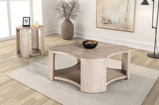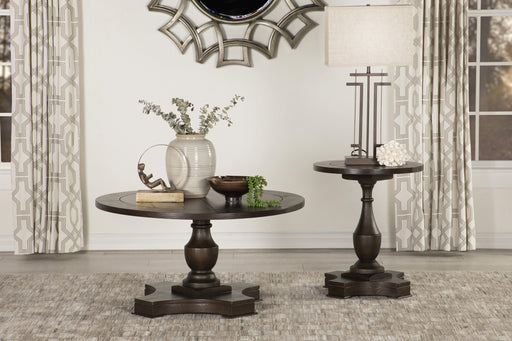 An elegant addition to your home’s living room is the Greer Collection. The conical base and tabletop of the end table and cocktail table creates a...