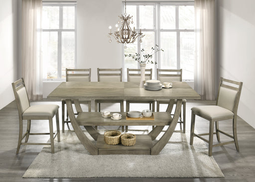 Bring modern style and convenient storage to your dining room with the Nova Counter Height Dining Room Collection. Boasting a weathered grey color,...