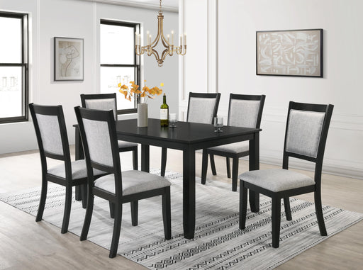 Experience the Eva Dining Room Collection for an elegant, unique look in your dining room. This black dining set features grey cushioned back chair...