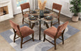 Elevate your dining space with our stunning and contemporary collection. The centerpiece is a round dining table with a sleek tempered glass top and a distinctive brown wood X-base, designed to seat four guests comfortably. Complement the table with our stylish dining chairs, each featuring a sturdy wood frame with a warm brown finish and soft chenille fabric upholstery. Choose from a variety of colors, including sophisticated gray, vibrant mustard, serene olive green, or warm rust, to create a cohesive and inviting dining area that perfectly blends modern design with functional comfort.