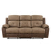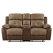 Rest and relaxation are on the list of things to do this weekend and the Glendale Collection is here to help. Plush seating is paired with a gentle gliding motion making your downtime a comfortable experience. Offered in brown polished microfiber, the collection features contoured seating, and plush arms. Manual motion mechanisms operate with the pull of a side-mounted tab, that once engaged, takes you from seated to reclined in an easy motion. The sofa has dual reclining ends, while the love seat features dual glider reclining end seats. The love seat also features a center console with cup holders and hidden storage. The available glider chair fully reclines and is perfect as an accompaniment to the collection.