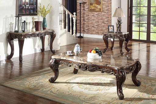 Style your living space with this Baroque themed 3-piece coffee table set that includes a coffee table, console table and end table covered in a me...