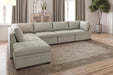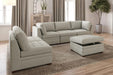 The Abby Beige Modular Sectional Collection offers a modern, clean aesthetic with a versatile modular design that adapts to your space. Its tufted seat cushions feature pocket coil construction for lasting comfort. Included is a storage ottoman providing ample space to keep your living area organized without sacrificing style. This collection combines functionality and contemporary design for a refined seating experience.