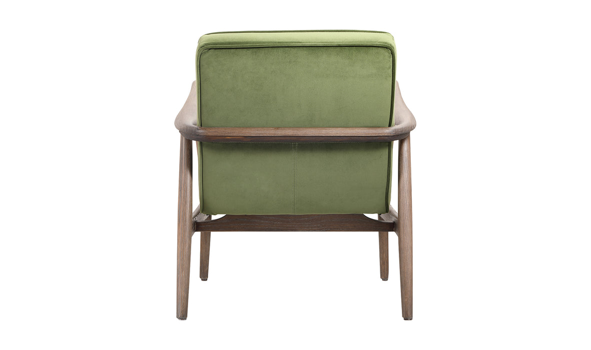 Soft and inviting, the Anderson armchair's rolled, tufted seating and slim side arms make it the perfect spot to enjoy a book or a cocktail. Dark ivy velvet upholstery adds a colorful flair when contrasted against the solid ash wood construction.