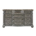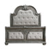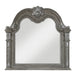 The luxurious grandeur that permeates the design of the Bennington Collection is an amalgamation of classic accenting and traditional lines. Carved bun feet, acanthus leaf carving, bead molding, and elegant framing account for the beautiful profile that defines the collection’s design. The grand sleigh bed serves as the focal point of your bedroom, with its headboard and footboard featuring button-tufted, gray textured linen-like fabric covering the central panels. Antique pewter-finished knob and ring pull hardware fronts the drawers of the collection while marble tops the dresser, chest, and nightstand. The elegant framing of the mirror follows the design of the rest of the collection, providing a timeless accent to your space. The gray finish, over acacia veneer, features subtle silver tipping for final luxurious accent.