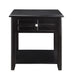 Designed for placement in a number of living room settings, the Carrier Collection is a functional and stylish addition to your home. This end table features a functional drawer and lower display shelving.
