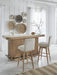 With rounded profiles, a fresh finish and abundant storage options, these inspired dining pieces from the Escape whole home collection make every meal a special occasion. Its unique designs draw upon a palette of nature-inspired materials, including authentic oak woodgrains in a soft natural finish, genuine sandstone, woven cane, warm bronze metal, and slubby woven textiles.