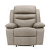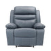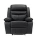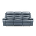 The Hancock Collection’s versatile look, paired with the feel of top grain leather and manual reclining, will help to create a welcoming and comfortable space within your home. The dual reclining ends of the sofa and love seat, as well as the reclining chair, are engaged with a pull of the side mounted tab. The subtle modern frame of the sofa, love seat, and chair is covered in 100 percent top grain leather where the body touches, with faux leather covering the remaining areas, its black, blue or latte hue complementing your home’s décor.