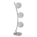 The floating orbital orbs accent lighting table lamp gravity defying design features three aluminum wraped sparkling orbs suspended mid-air, arranged in orbital order on an elegantly curved stand, illuminating warm white light rays. The piece is beautifully crafted using high quality satin nickel finish metal. Remarkable addition piece on your night stand, end table, or sofa table. Great accent lighting that can enhance the surrounding ambiance, perfect for a night light, or a mood light to brighten up any room.