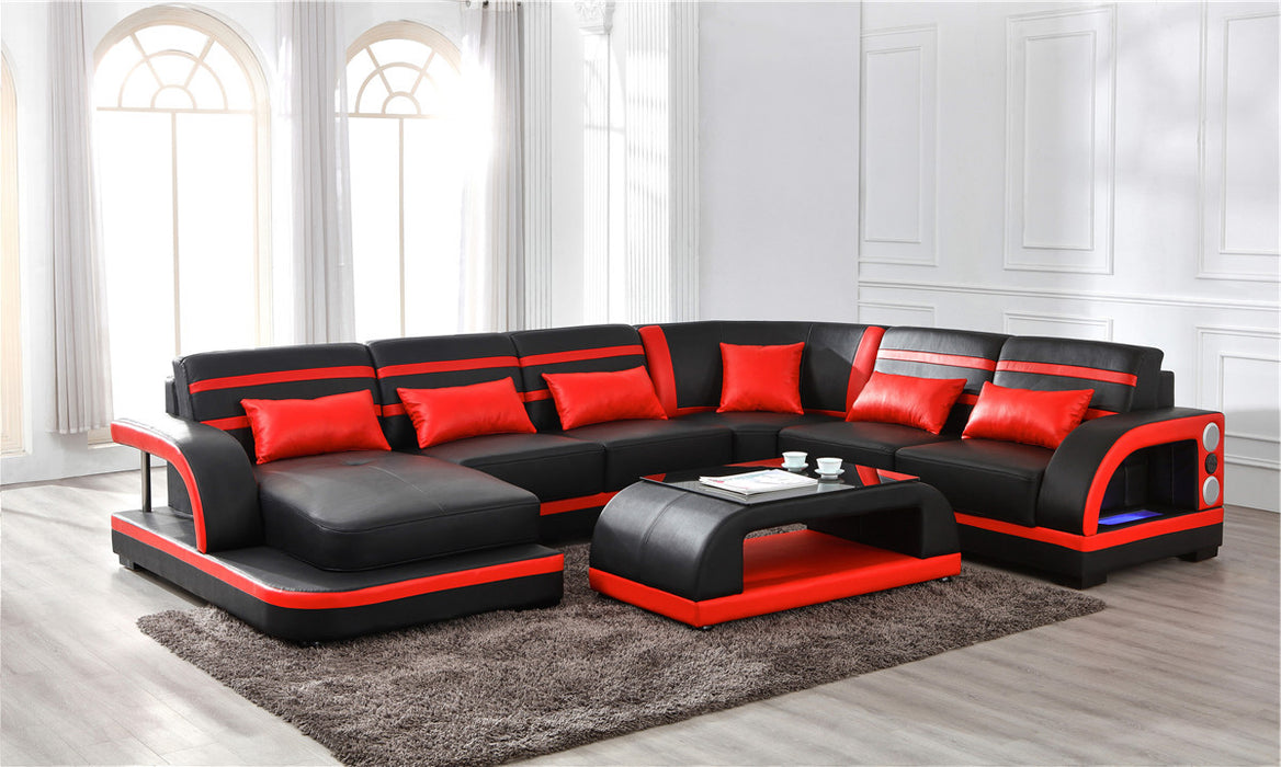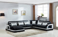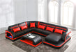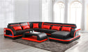 The Enzo Italian Leather Sectional features a Bluetooth Speaker, USB Port, Aux Connection and an LED light under one armrest.