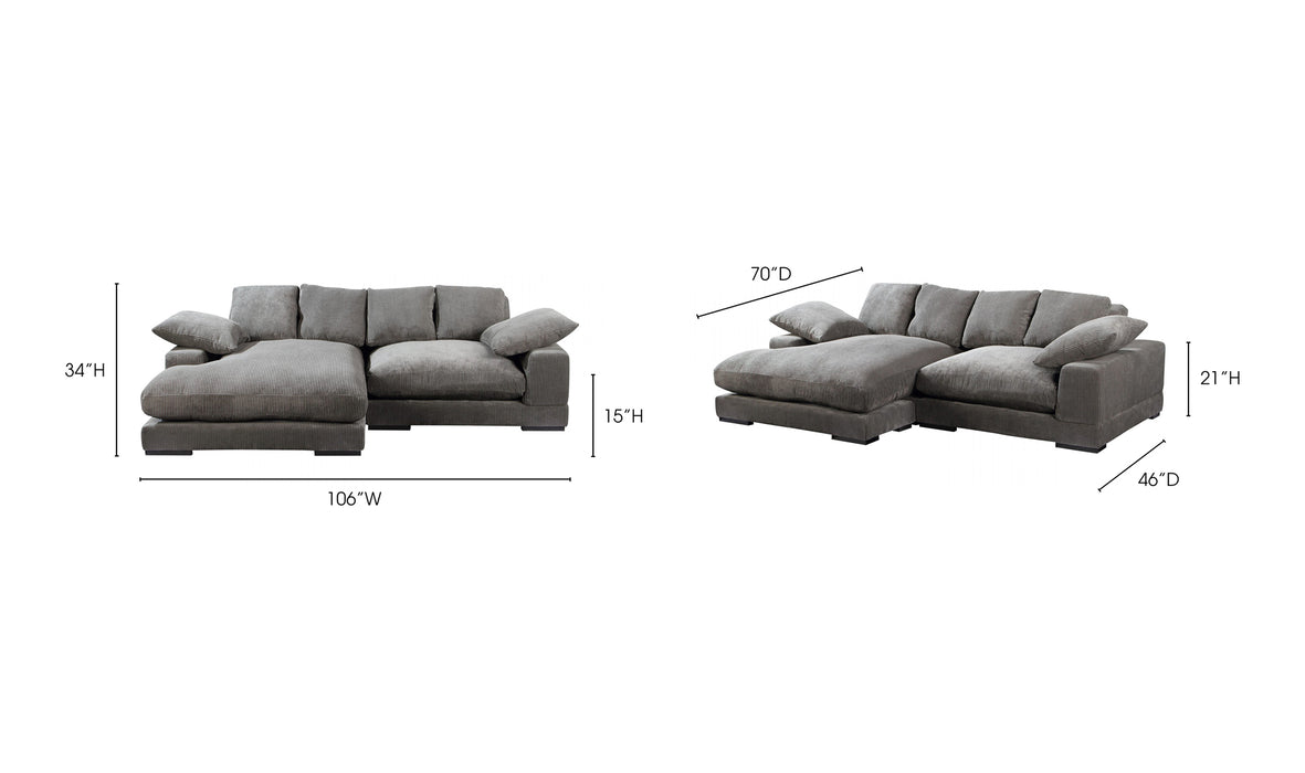 A fusion of comfort and elegance with clean lines and plush cushions, the Plunge sectional is masterfully crafted to maximize space and provide unparalleled relaxation. Its versatile flip chaise feature allows a left or right-side orientation that effortlessly adapts to create a sanctuary of style and repose, while its improved channeling and filling distribution ensures soft landings and comfort for years to come.