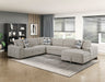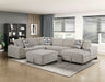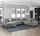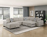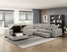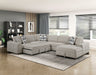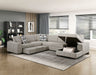 The substantial seating space of the Raife Collection creates a comfortable spot perfect for entertaining or just relaxing. The sectional allows for multiple configurations with individual components consisting of; a left-side chaise, right-side chaise, armless two-seat unit, corner unit, left-side two-seater and right-side two-seater – each with a pull-out bed, as well as one centimeter of memory foam on the seats and storage ottoman. The pull-out bed, stored beneath the two-seat unit, pops up to create ample space for full-leg extension. The lift-top seat of the chaise unit opens to reveal hidden storage perfect for blankets and pillows. Furthering the functional capabilities of the collection is the ottoman, its seat rising to reveal discrete storage. Textured fabric upholstery covers the seating group.
