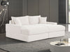 Relax in style with the Tavedestrand padded chenille double chaise sofa, featuring 1.8 lb. high-density foam, USB ports, and stainless steel cup holders.