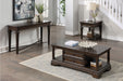 Classic design elements create a timeless look for your living room making the Tobias Collection a stylish and functional addition. Birch veneer covers the collection with an espresso finish utilized to highlight the distinctive grain of the wood. The lift-top cocktail table allows for ease of access to items on your tabletop, whether it be a meal or electronic device, while open shelving and drawer storage create additional functional use for both the cocktail table and square-top end table. The end table features an open display shelf and the sofa table presents an elongated surface for your decorative displays.