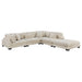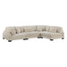 Configurable to your available space, the Traverse Collection allows for the addition and detachment of pieces for a customized seating experience. The available corner unit, armless chair and ottoman can be mixed and matched to fit your needs, creating traditional configurations from a sofa or love seat to an imaginative sectional creation. The plush beige corduroy fabric upholstery creates a plush expanse for a soft touch experience. The corner seat features two toss pillows, adjustable back and arm rest, and reversible cushions. The armless chair features a lumbar pillow, and reversible cushions. The versatility in placement of the ottoman is left to your creative vision, using it as a stand-alone unit or part of a larger configuration.