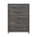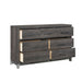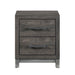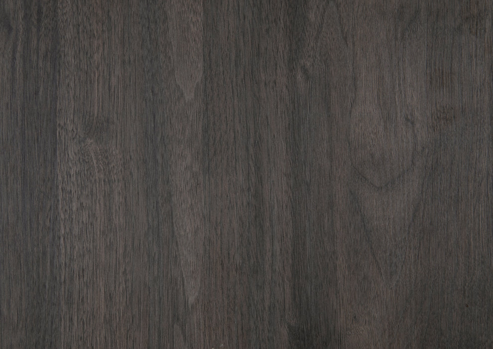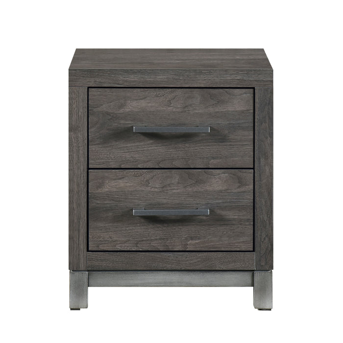 The sleek design of the Zephyr Collection pairs clean lines with modern convenience to create a style that will be the perfect palette for your design aspirations. The collection’s nightstands flank the low-profile bed, creating a wall-paralleling seamless transition between the pieces. Visually tying the collection together are the painted metal-finish banding of the headboard’s sides and the case piece’s base rails, as well as the metal bar hardware that fronts each drawer, culminating in an accenting contrast to the dark gray faux wood finish of the melamine veneer.